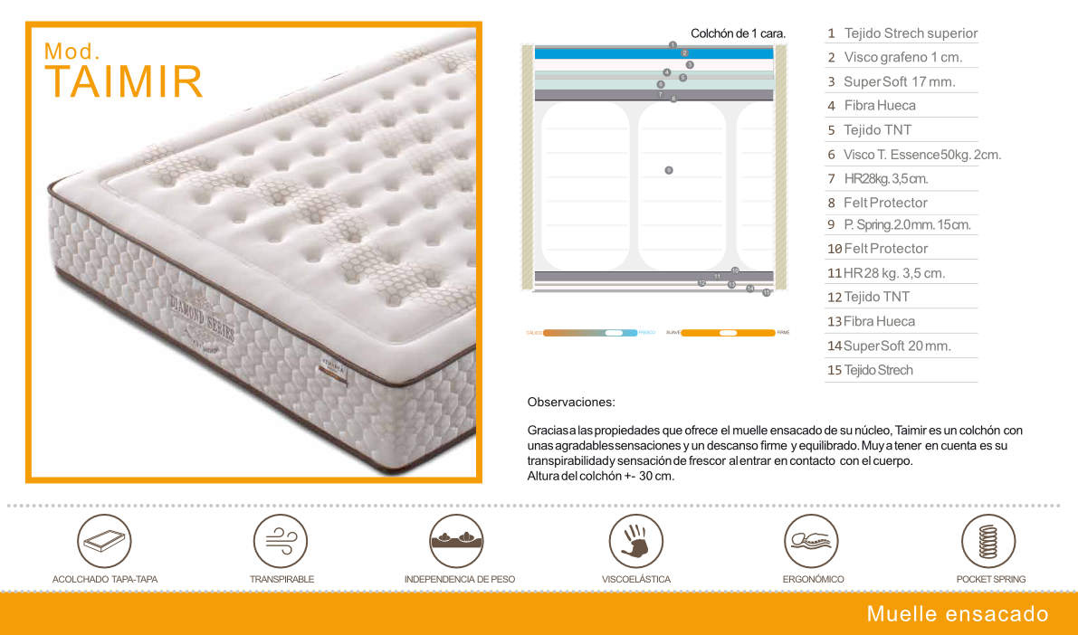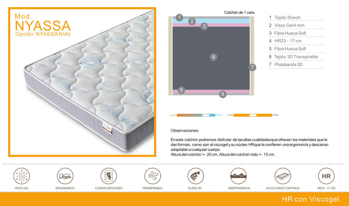 Colchones en todas las medidas y tipos: colchones de muelles y muelles ensacados, colchones viscoelásticos y HR, colchones tecnológicos, con capas eco y gel. Colchones con memoria de forma, espumas de alta resistencia y adaptabilidad. Transpirables y termorregulables.
